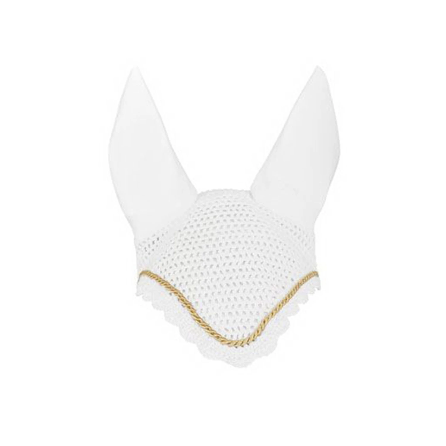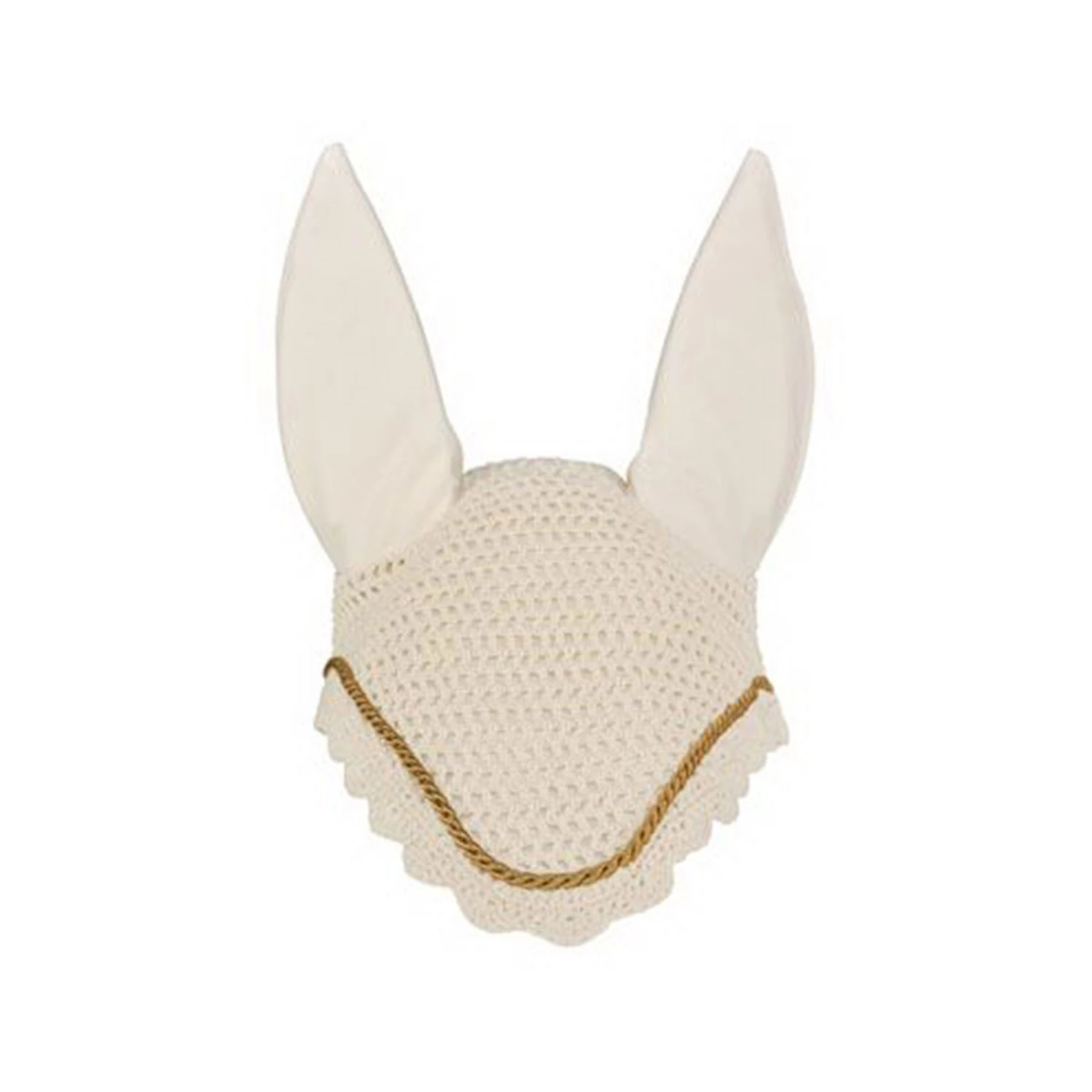 Der gehäkelte Fliegenkopfschutz mit elastischen Ohren bietet nicht nur im Sommer Schutz vor Lästlingen, sondern bildet in Kombination mit der umlaufenden Kordel eine harmonische Einheit zum Kombinieren.