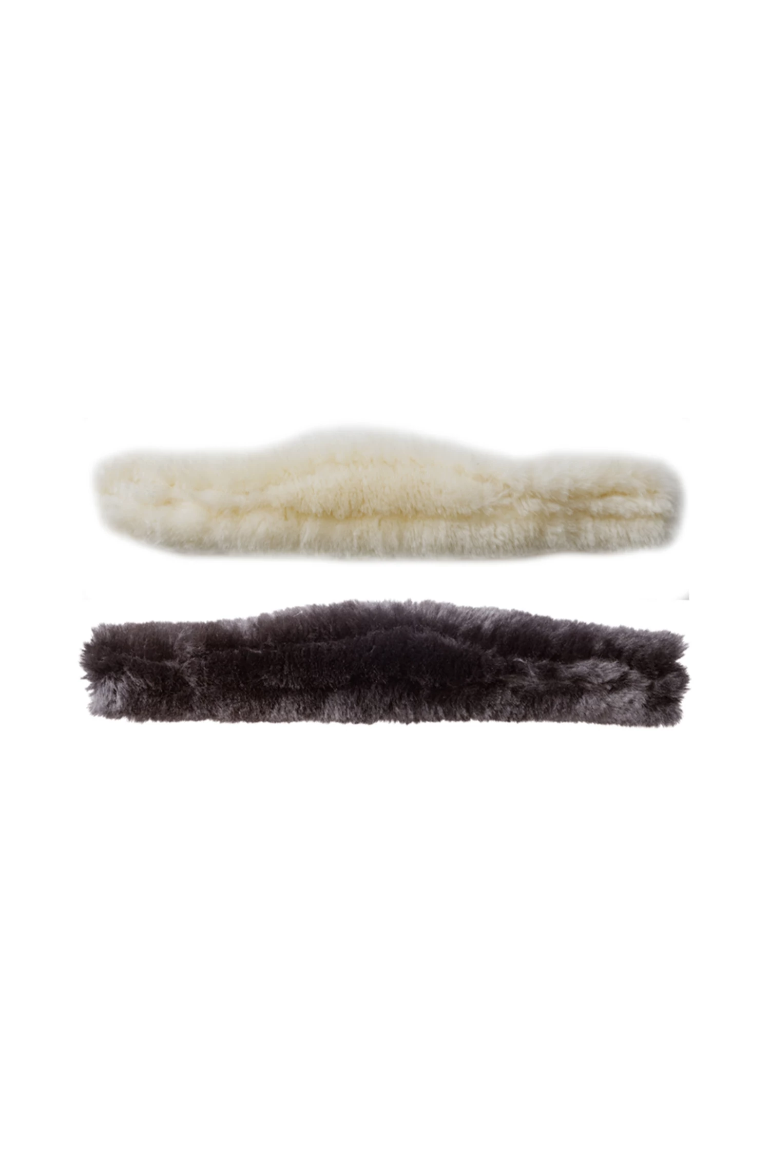 60 % echtes Lammfell außen, um eine neoprenähnliche Innenpolsterung (35 %) gewickelt, Polyester-Klettverschluss (5 %) zur Befestigung am Zaumzeug.